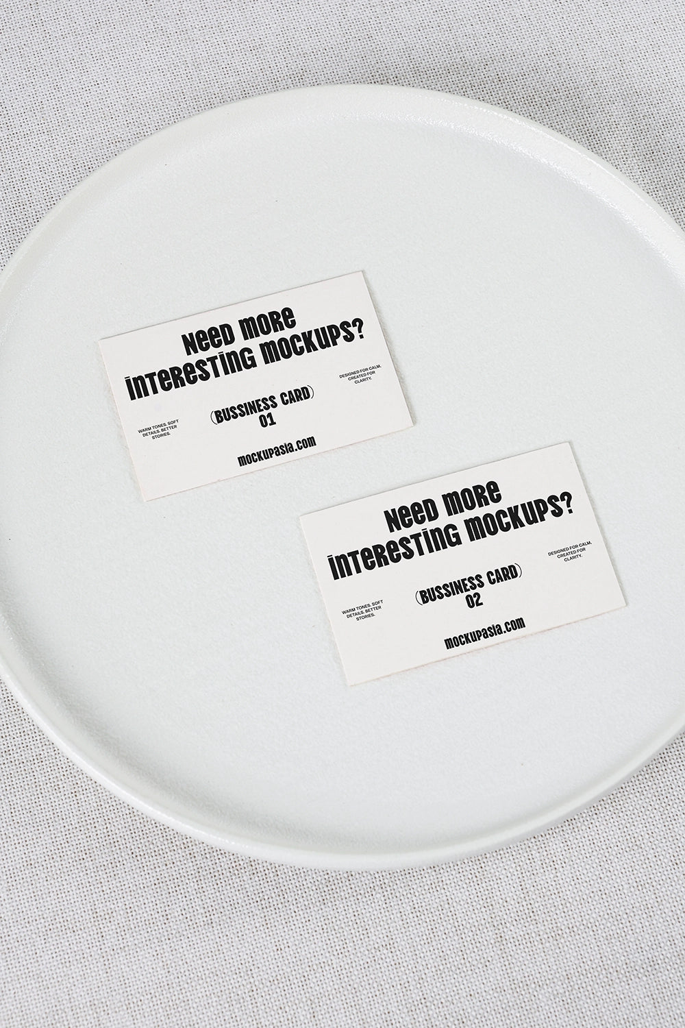 Business Card Mockup CCR29 – Two Cards on White Plate for Premium F&B Branding
