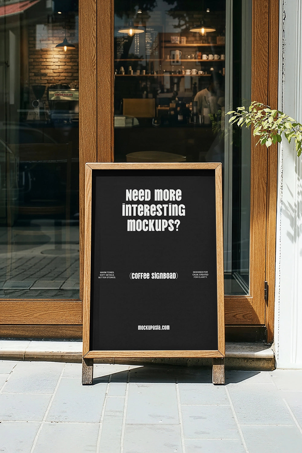 Easily customize your signboard design using Photoshop smart objects. This mockup is ideal for coffee shops, bakeries, and lifestyle brands that want to visualize their brand identity in an authentic, minimal, and welcoming way.