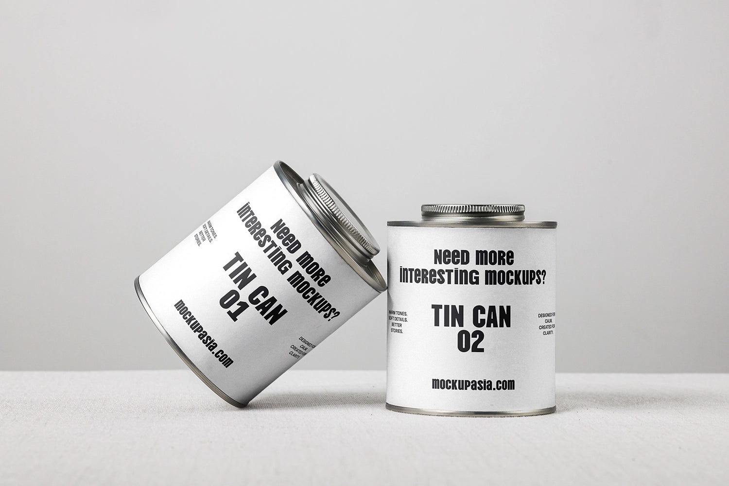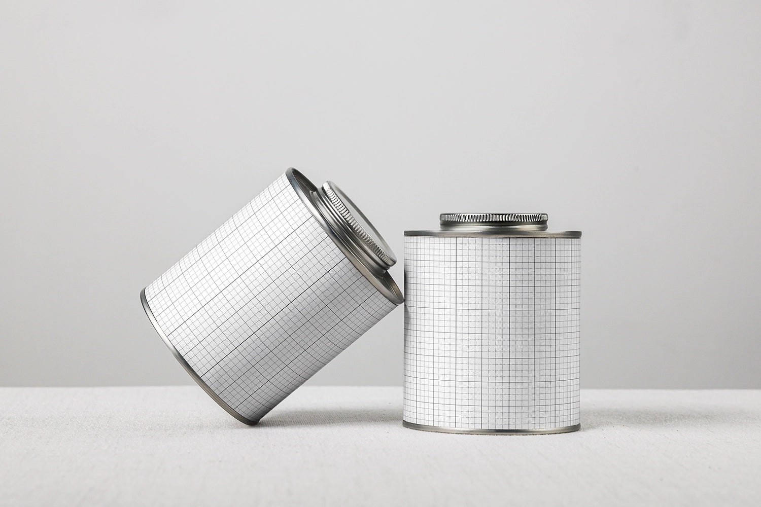 Coffee Tin Can Mockup CCR26 – Two Front-Facing Coffee Cans Leaning Together
