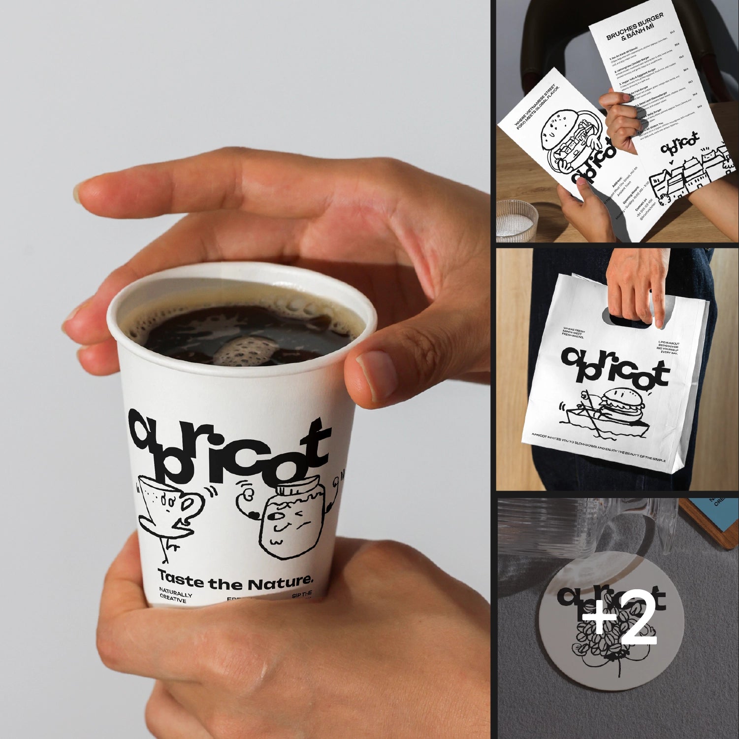 - 5 mockups: 2 Cup mockups, Paper bag, Menu, Coaster