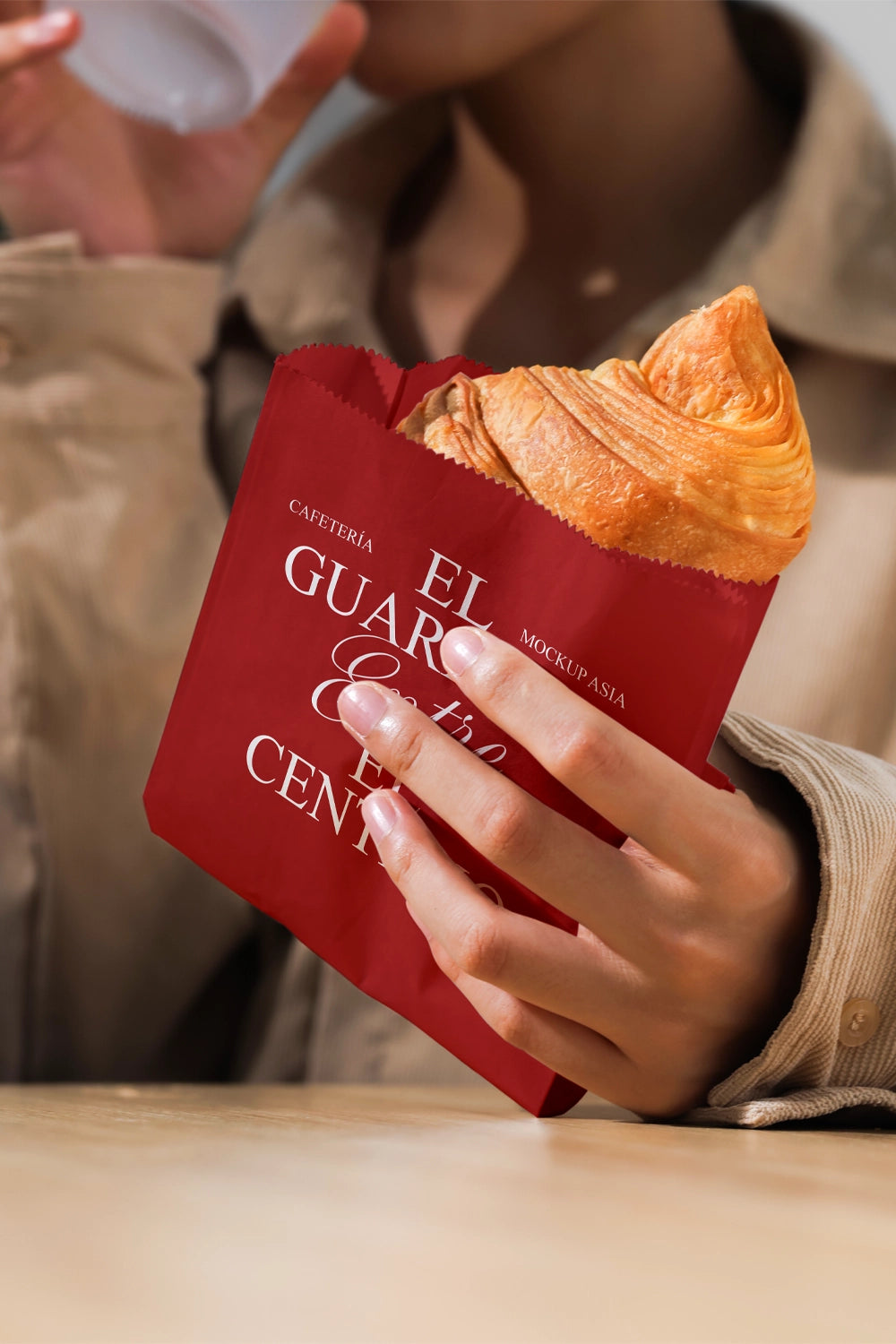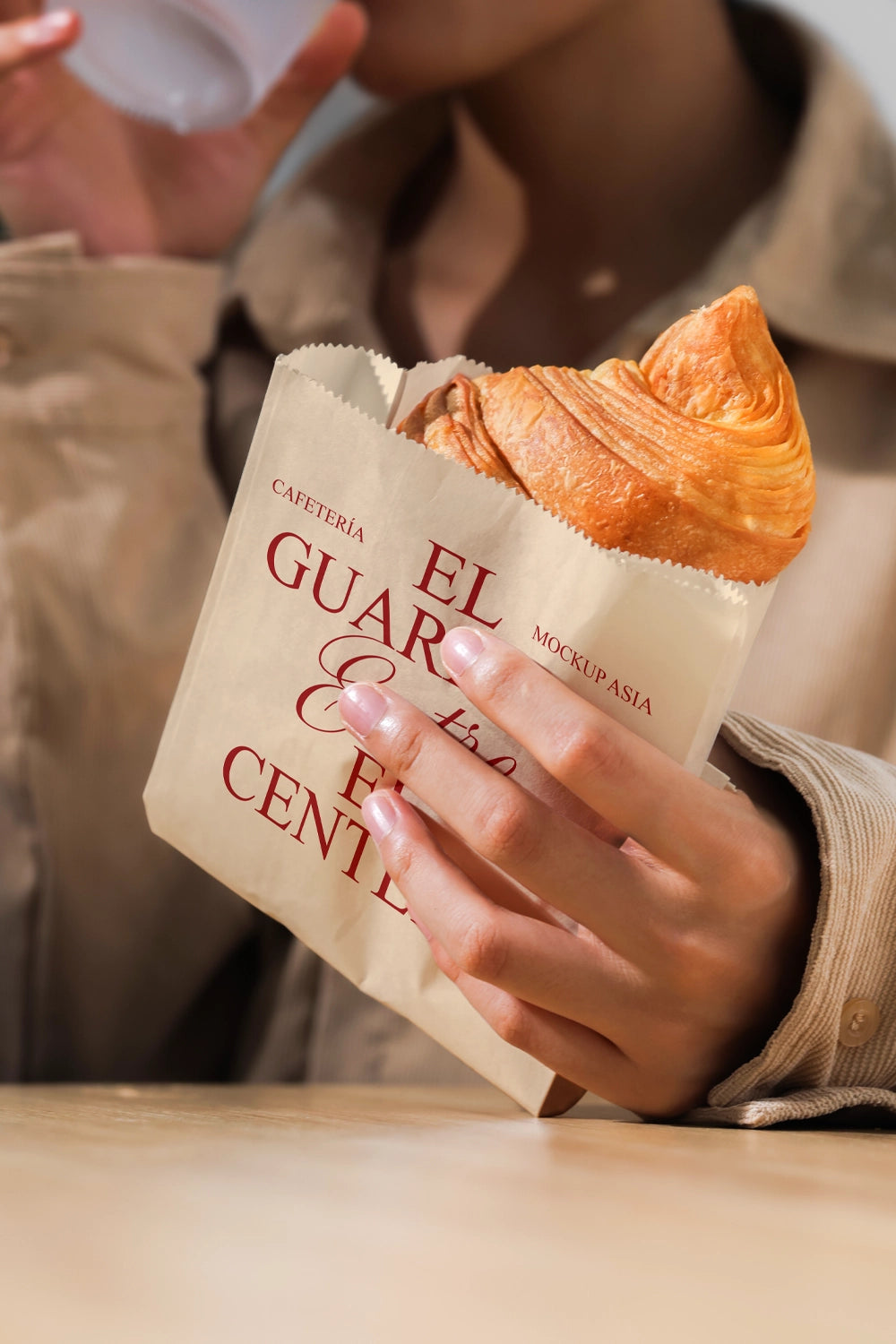 Bring your bakery branding to life with Paper Bag Mockup with Croissant – a realistic PSD template created from a real photo for ultra-high detail and natural lighting. This paper bag mockup highlights a kraft bag paired with a fresh croissant, making it perfect for bakeries, artisan food brands, and packaging designers looking for a warm and authentic presentation.