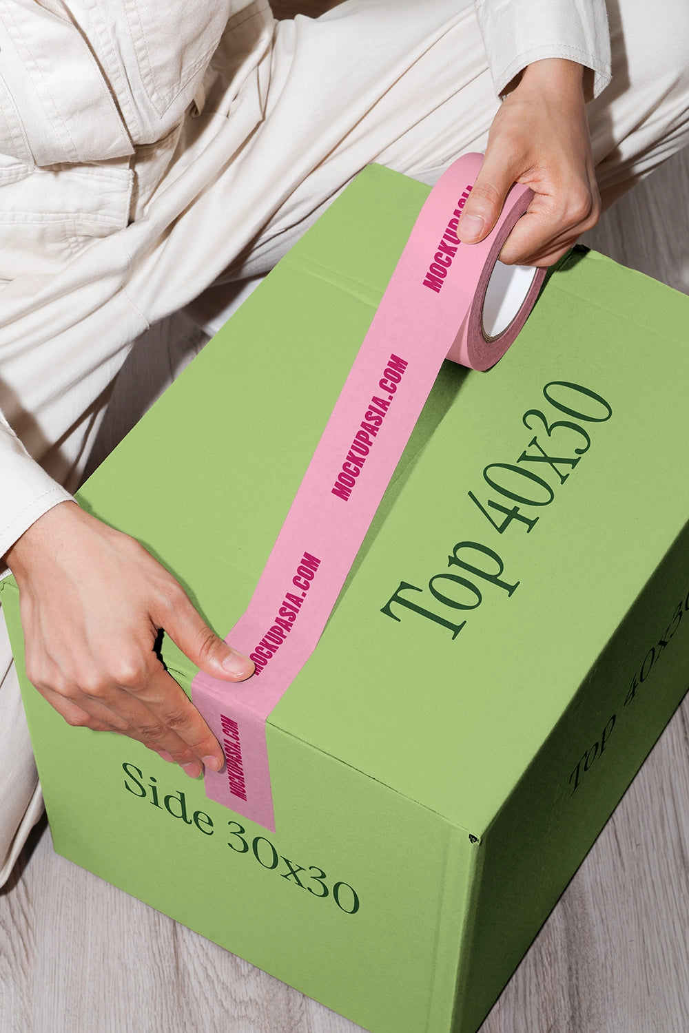 Present your packaging branding in action with the Tape Mockup PT02 – featuring a young woman sealing a cardboard carton box with paper adhesive tape. This lifestyle-inspired mockup allows you to customize the tape design as well as the visible sides of the carton box, making it ideal for showcasing logos, packaging graphics, or shipping identity. The realistic setting highlights your brand in a practical and professional context, perfect for e-commerce visuals, client presentations, or portfolio displays.