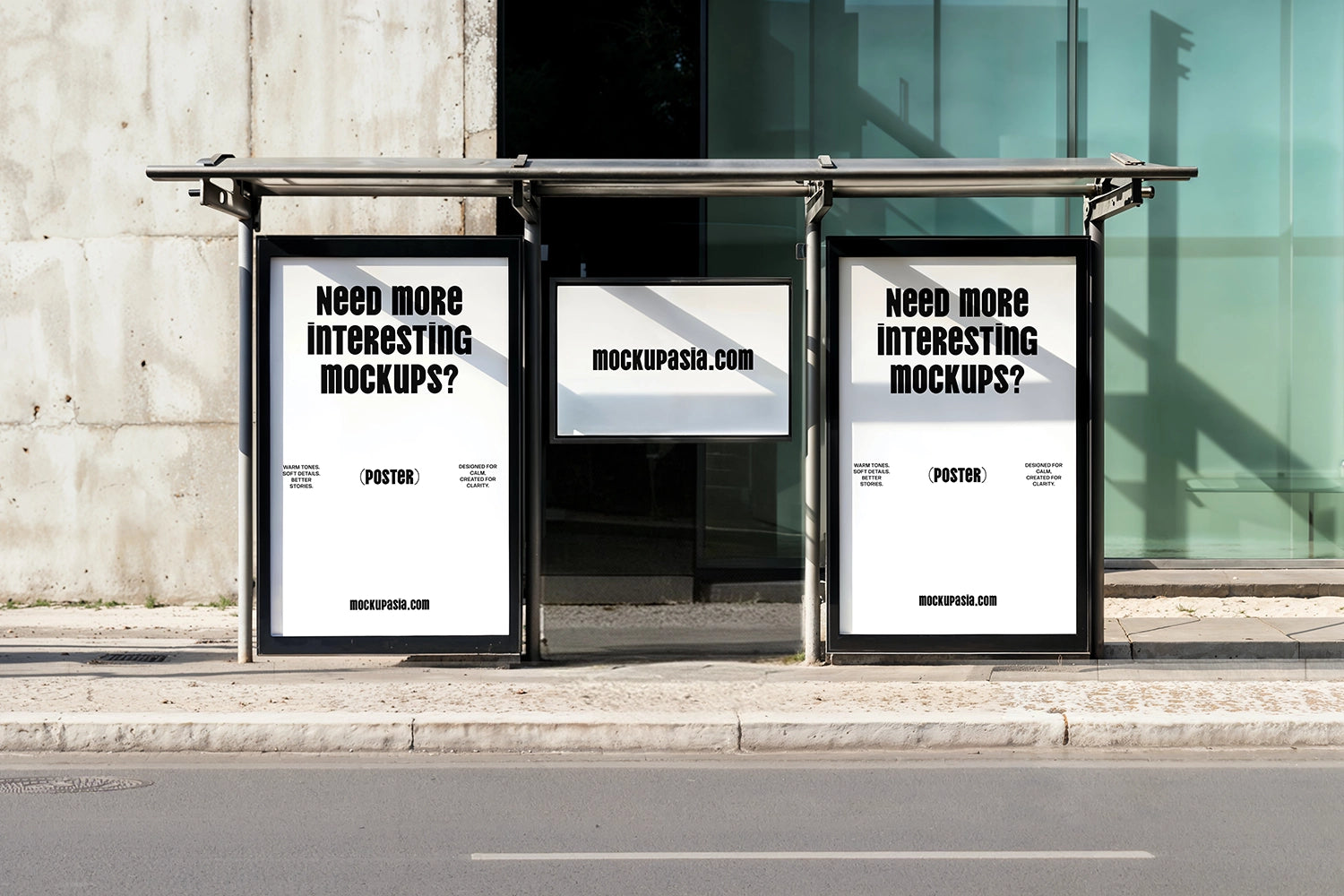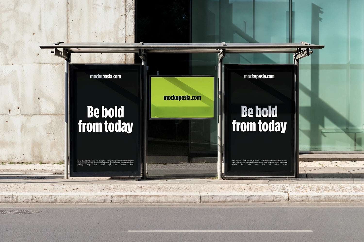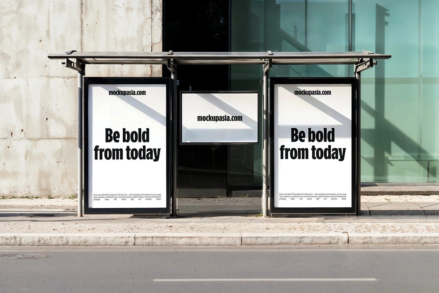 Bring your advertising projects to life with the Urban Poster Mockup – UP08. This mockup showcases a vertical poster placed at a modern bus stop, under a clear blue sky with crisp natural light. The fresh and clean environment highlights your design, making it perfect for branding presentations, outdoor campaigns, and promotional visuals that need an authentic city vibe.