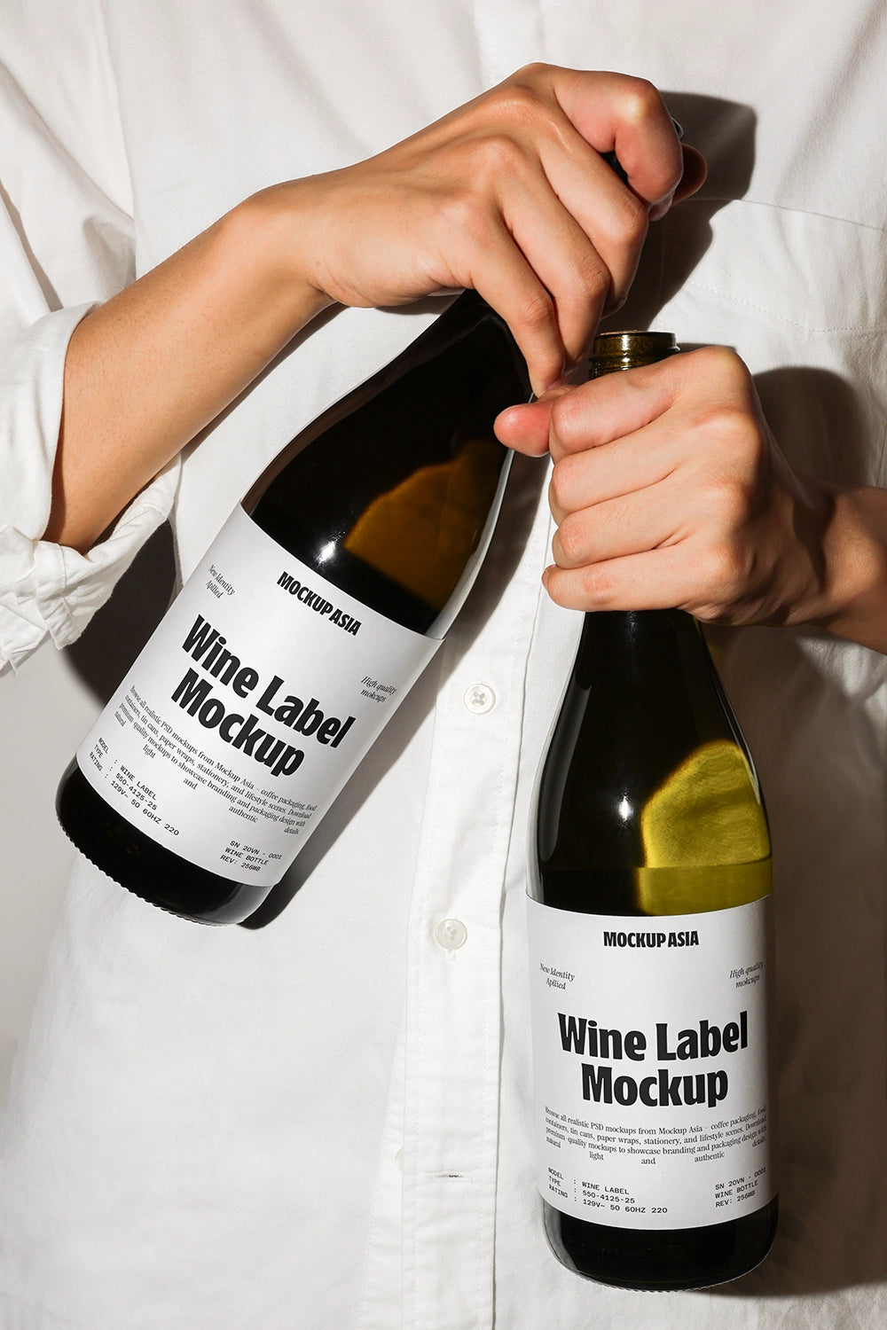 Showcase your design with impact using the Wine Label Mockup WL03 – featuring two wine bottles held in hand with a close-up perspective under strong studio lighting. The sharp details and dramatic highlights make it ideal for presenting wine mockup, wine bottle mockup, liquor mockup, or spirit label mockup with maximum clarity.